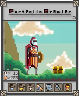 Interactive web game. Pushing GIF images to the limit, the Portfolio Knight treks endlessly, defeating countless enemies and gaining treasure as the user browses more web pages.